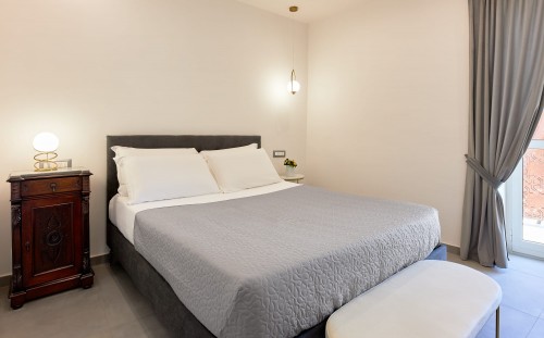 Camera di 22 m², massimo 3 persone (1 letto matrimoniale + 1 poltrona-letto), situata nel centro storico di Castellabate con balcone vista mare.